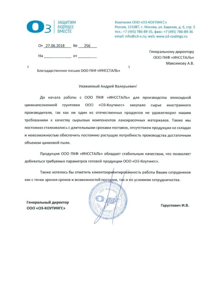ООО Производственно-коммерческая фирма «ИНССТАЛЬ» начала свою деятельность в 2004 г. За 12 лет наша фирма превратилась в предприятие с мощной производственной базой площадью 30 000 кв.м., выпускающее цинковые порошки и цинковые сплавы, со штатом более 100 человек